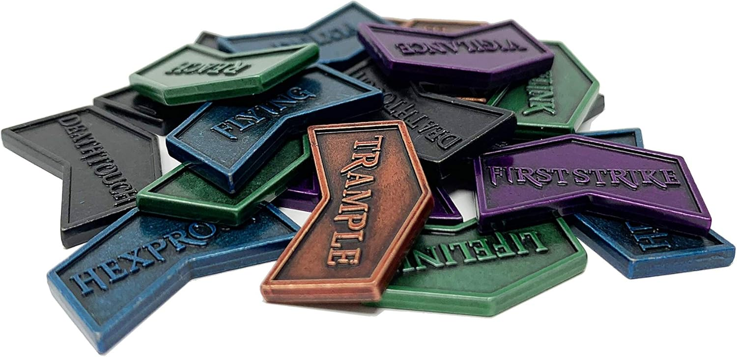 - Set of 24 metal reversible keyword tokens for Magic the Gathering
