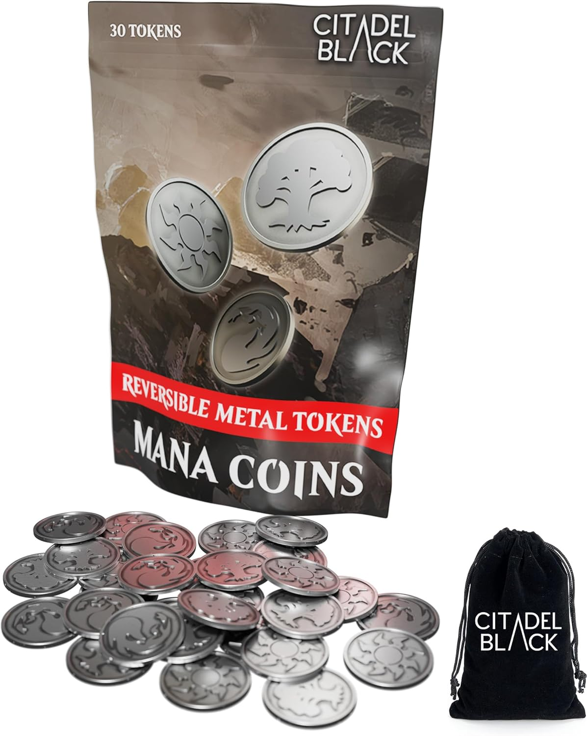- Complete Set of 30 Coins: Includes 10 coins for each reversible mana pairing: Mountain/Island, Plains/Swamp, and Forest/Colorless.