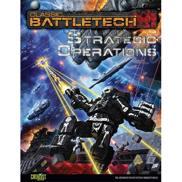 Another volume in the Classic Battletech core rules series, Strategic Operations focuses on “forces in solar system” (as opposed to “forces on world” for Tactical Operations and the even-wider-ranging scope of the forthcoming Interstellar Operations). This book’s main sections consist of general rules covering a variety of topics (including a system for abstracted aerospace gaming); rules for advanced aerospace movement, combat, and unit construction; maintenance, repair, salvage, and customization rules; and miniatures rules (as opposed to using miniatures on a standard hex maps).
